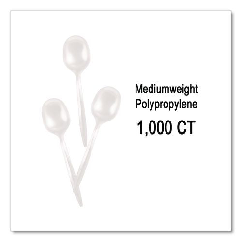 Mediumweight Polypropylene Cutlery, Soup Spoon, Plastic, White, 1,000/Carton
