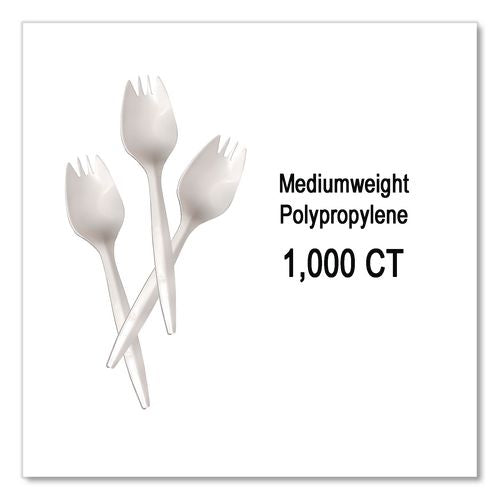 Mediumweight Polypropylene Cutlery, Spork, Plastic, White, 1,000/Carton