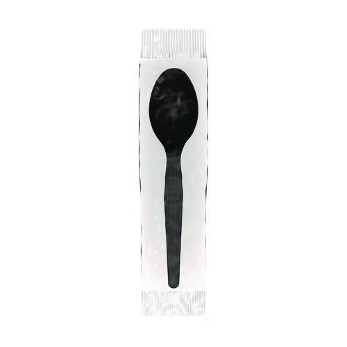 Mediumweight Polystyrene Wrapped Cutlery, Spoon, Plastic, Black, 1,000/Carton