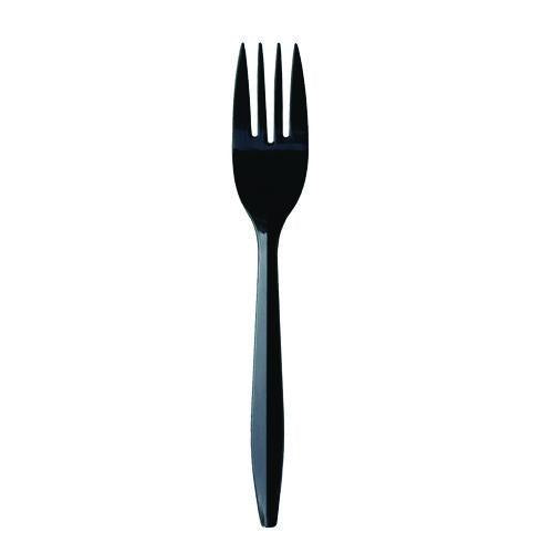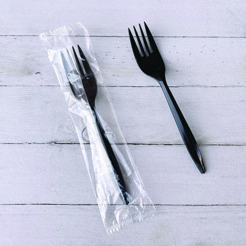 Mediumweight Wrapped Polypropylene Cutlery, Fork, Plastic, Black, 1,000/Carton