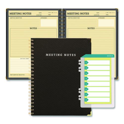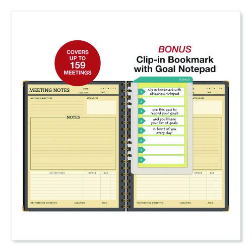 Elevate your meeting game and enhance your professional presence. Thoughtfully structured, intuitive Meeting Notes formatting begins with prompts for when, where, who and why details, which seamlessly lead to a large, ruled Meeting Notes block and an Action Items chart with space for task details, owner and due date. At bottom, a Next Meeting block rounds everything out. Use the included clip-in bookmark with built-in goals notepad to ensure you're on the right page as soon as a meeting begins. Exuding elegance and durability, the Meeting Notes Book from Global Printed Products features a luxurious textured cover and snag-free twin-wire binding.Package Includes: (1) Clip-In Bookmark with Built-In Goals Notepad