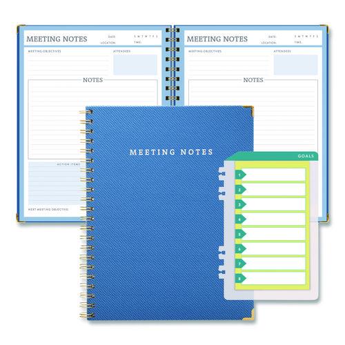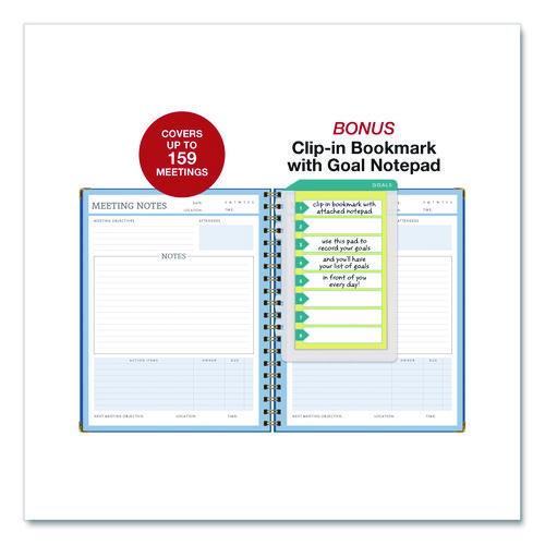 Elevate your meeting game and enhance your professional presence. Thoughtfully structured, intuitive Meeting Notes formatting begins with prompts for when, where, who and why details, which seamlessly lead to a large, ruled Meeting Notes block and an Action Items chart with space for task details, owner and due date. At bottom, a Next Meeting block rounds everything out. Use the included clip-in bookmark with built-in goals notepad to ensure you're on the right page as soon as a meeting begins. Exuding elegance and durability, the Meeting Notes Book from Global Printed Products features a luxurious textured cover and snag-free twin-wire binding.Package Includes: (1) Clip-In Bookmark with Built-In Goals Notepad