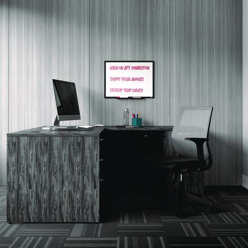 Let ideas flow and keep projects organized and on-task with the TRU RED durable melamine dry-erase whiteboard, featuring a smooth surface for easy writing and convenient cleanup. When sharing, changing, and perfecting ideas, you need the reliability of TRU RED Dry Erase Boards, the ultimate collaboration tool. The dry erase kit includes an easy-to-install mounting kit with instructions, and one TRU RED fine tip black dry erase marker that can be stored conveniently on the included accessory tray. TRU RED markers feature a unique Squircle barrel shape that provides a comfortable grip and keeps the marker from rolling on flat surfaces.Package Includes: Mounting Kit; Accessory Tray; (1) Fine Tip Black Dry Erase Marker