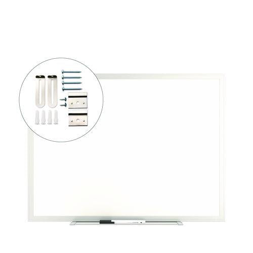 Let ideas flow and keep projects organized and on-task with the TRU RED durable melamine dry-erase whiteboard, featuring a smooth surface for easy writing and convenient cleanup. When sharing, changing, and perfecting ideas, you need the reliability of TRU RED Dry Erase Boards, the ultimate collaboration tool. The dry erase kit includes an easy-to-install mounting kit with instructions, and one TRU RED fine tip black dry erase marker that can be stored conveniently on the included accessory tray. TRU RED markers feature a unique Squircle barrel shape that provides a comfortable grip and keeps the marker from rolling on flat surfaces.Package Includes: Mounting Kit; Accessory Tray; (1) Fine Tip Black Dry Erase Marker