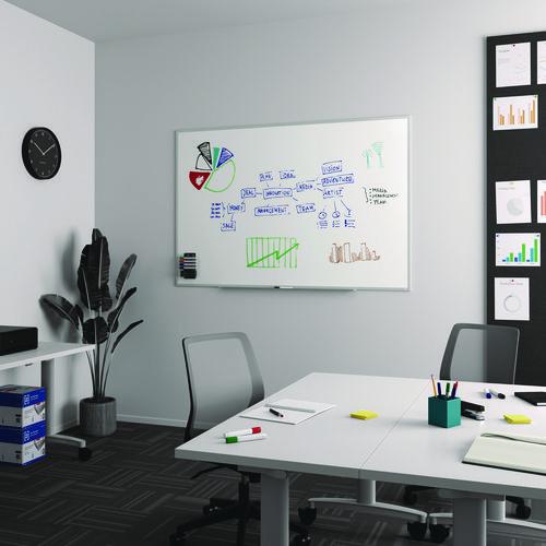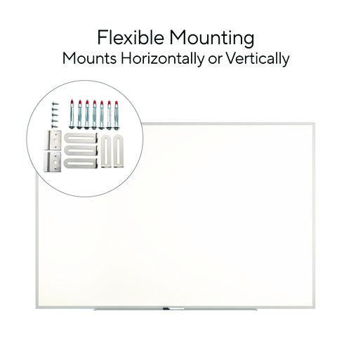 Let ideas flow and keep projects organized and on-task with the TRU RED durable melamine dry-erase whiteboard, featuring a smooth surface for easy writing and convenient cleanup. When sharing, changing, and perfecting ideas, you need the reliability of TRU RED Dry Erase Boards, the ultimate collaboration tool. The dry erase kit includes an easy-to-install mounting kit with instructions, and one TRU RED fine tip black dry erase marker that can be stored conveniently on the included accessory tray. TRU RED markers feature a unique Squircle barrel shape that provides a comfortable grip and keeps the marker from rolling on flat surfaces.Package Includes: Mounting Kit; Accessory Tray; (1) Fine Tip Black Dry Erase Marker