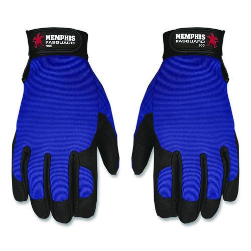 Memphis Gloves Fasguard Clarino Synthetic Leather Palm Multi-Task Gloves, 9" Long, Large, Blue/Black, Pair