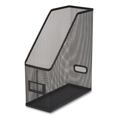 Keep different sized reading materials together and organized on tables, desks or shelves. Flat square rounded edges offer a stylish storage solution. Reinforced ribbing keeps the structure from bowing under pressure. Integrated handle provides easy lifting when removing or storing on shelves. Label insert offers easy identification. Features feet to prevent slipping and scratching while sitting on top of your desk.
