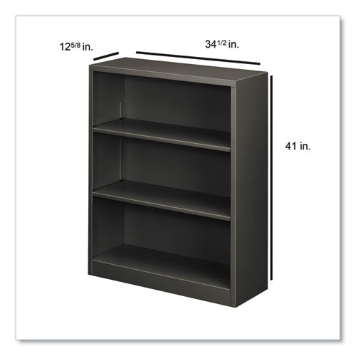Metal Bookcase, Three-Shelf, 34.5w x 12.63d x 41h, Charcoal