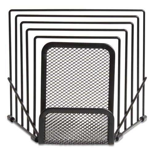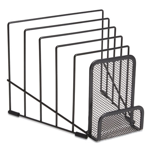 Create extra room for file folders, books, binders and mail while keeping your smart phone front and center. Open-design incline sorter features a flat, square metal frame with a reinforced V-shaped rib structure to support heavier items. A front-mounted metal mesh slot accommodates smart phones, important memos and letters. Rounded corners minimize the potential for snags. Protective rubber feet prevent the unit from sliding around and scratching your worksurface.
