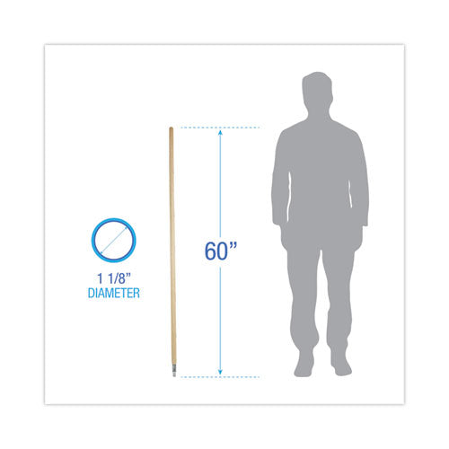Long-lasting, die-cast aluminum threaded tip is secured to a natural lacquered hardwood broom handle. Composed of a durable handle and metal thread, this handle is strong and reliable. The handle's smooth grip is ideal for regular use with or without gloves in any environment. The clear-coated finish is easily wiped clean and repels dust. The metal threaded tip is compatible with brooms using the same threading and assembles without tools.