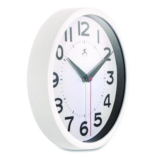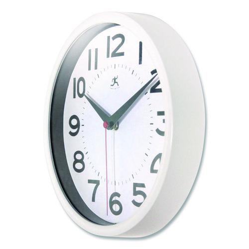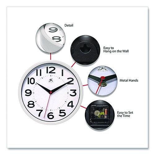 Experience accurate timekeeping, quiet operation, and effortless style with this Metro resin analog wall clock. Featuring large black numbers on a sleek white face with silent-running hands, this battery-powered clock keeps time accurately with minimal noise and offers easy visibility from afar. Enriches office interiors with its understated design and stylish case.