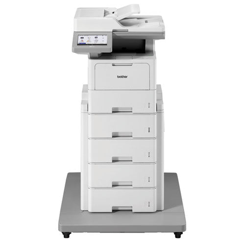 The Brother Workhorse MFC-L6915DW enterprise monochrome laser all-in-one printer offers enterprise-level performance, advanced security features, large paper capacity and reliable, high-quality output for mid to large-sized workgroups. This high-performance all-in-one printer helps to increase productivity with fast print and copy speeds up to 52 ppm. Offers built-in value with an included super high-yield toner cartridge and a low total cost of ownership by using the TN925 Brother Genuine max yield replacement toner cartridge. Triple Layer Security features help to limit document and device access and protect against network intrusions. Offers a large standard paper capacity that is scalable as your business needs grow. Quickly scan multi-page documents to a wide variety of destinations using the 80-page capacity auto document feeder. The 7" touchscreen display allows for the creation of customized shortcuts to your most frequently used workflows. The MFC-L6915DW also offers flexible connectivity with built-in Gigabit Ethernet and dual band wireless networking, plus convenient mobile device printing to meet mobile workforce demands.Package Includes: TN920XXL Toner Cartridge; DR925 Drum Unit; AC Power Cord; Telephone Line Cord; USB Port Cover; Quick Setup Guide