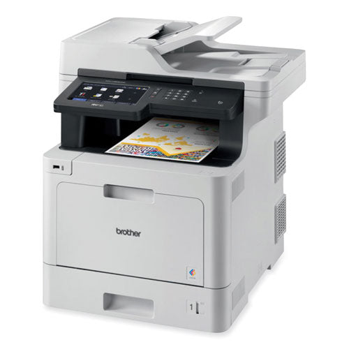 The Brother MFC-L8905CDW Business Color Laser All-in-One Printer is ideal for businesses or workgroups with higher print volumes who are looking for reliable performance, advanced security features, and high-quality output. Delivers low-cost printing by using the TN437 ultra high-yield replacement toner cartridges for 9,000 pages black and 8,000 pages each color. Automatic duplex printing/copying up to 33 ppm in black and color. Seventy-page capacity auto document feeder scans both sides of the page in a single pass for fast, two-sided scanning. Enjoy the 7" color touchscreen display. Features advanced security features. Easily print from or scan to a wide variety of mobile devices.Package Includes: Standard Yield Toner Cartridges; Drum Unit; Belt Unit; Waste Toner Box; AC Power Cord; Telephone Line Cord; Quick Setup Guide; Installation CD-ROM