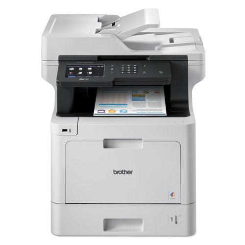 The Brother MFC-L8900CDW color laser All-in-One is ideal for offices and small workgroups with higher print volumes. Super high-yield 6,500-page replacement cartridges (approximate yield based on ISO/IEC 19798) deliver low cost, business quality output. Print/copy up to 33ppm. 5.0" touchscreen display. Automatic duplex print/scan/copy/fax. 70-page capacity auto document feeder. Legal-size scan glass.Package Includes: Standard Yield Toner Cartridges; DR431CL Drum Unit; BU330CL Belt Unit; WT320CL Waste Toner Box; Quick Setup Guide; Installation CD-ROM; AC Power Cord