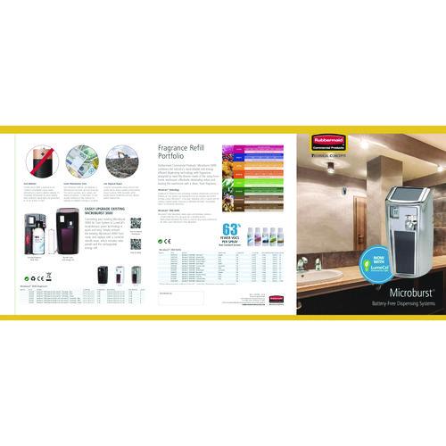 Specialized odor neutralizers break down and eliminate offensive odors, while quickly evaporating, alcohol-based fragrances keep your area pleasantly scented. Patented release actuator distributes a fine, dry mist, ensuring maximum dispersal. Long-lasting refill is good for up to 3,000 metered releases when used with Microburst 3000 dispensers.