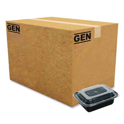 Microwavable Food Container with Lid, Rectangular, 12 oz, 5.78 x 4.52 x 2.24, Black/Clear, Plastic, 150/Carton