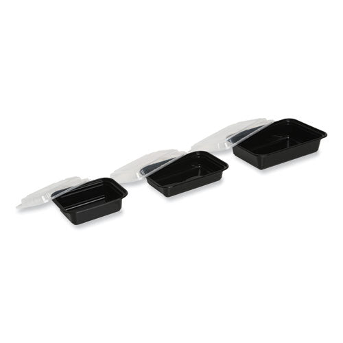 Microwavable Food Container with Lid, Rectangular, 28 oz, 8.81 x 6.02 x 2.04, Black/Clear, Plastic, 150/Carton