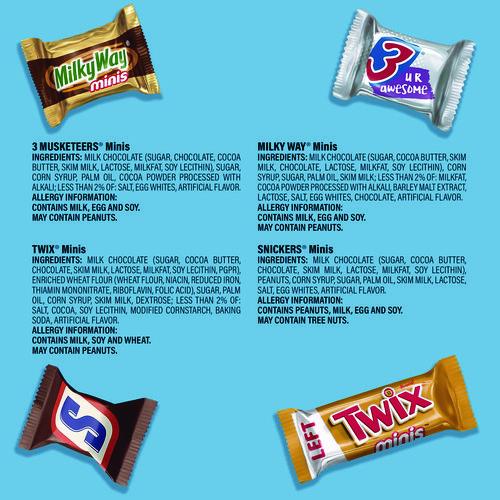 So much great candy to share with friends and family! Enjoy your favorite flavors of party candy in this milk chocolate assortment. Contains individually wrapped mini candies that make a tasty pinata candy treat. Share the fun of your game time spread with this chocolate candy variety pack. Bulk individually wrapped Minis chocolate candy is a pantry staple, take them on-the-go, pack in lunches or bring some with you on family road trips to enjoy chocolate candy treats anywhere. Don't stop at just unwrapping and enjoying these candies, add them to your favorite dessert and baking recipes. Simply mix in candy bar pieces in place of chocolate chips or as an extra delicious addition to any recipe. Minis sized candy also makes great ice cream toppings. Craft the perfect sundae with chocolate candy pieces.Note: This is a non-returnable item.