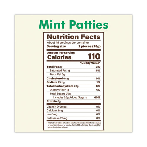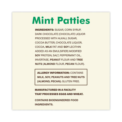 These mint patties have perfected a classic combination of flavors sure to entice your tastebuds. First, enjoy the rich, robust flavor of dark chocolate. Then, take a bite, and cool your mouth with the refreshing creamy peppermint center. With individually wrapped mint patties, this treat is perfect for keeping to yourself, or for filling a candy buffet. Indulge your senses guilt-free with these mint patties, always low in fat and gluten-free.Note: This is a non-returnable item.