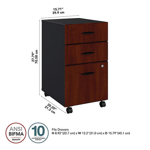 Fully assembled. Freestanding or fit under 30" high desks. File drawers accommodate letter/legal size hanging files. Full-extension ball bearing slides allow full access to drawers. Four casters for easy mobility. Key lock.Note: This is a non-returnable item.