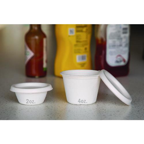 This 2-oz condiment cup offers both convenience and sustainability in a compact package. Crafted from renewable materials, it provides a guilt-free solution for serving sauces, dips and condiments. Designed to be sturdy yet lightweight, it ensures easy handling and disposal, making it ideal for both dine-in and take-out scenarios. The cup's compact size makes it versatile for various condiment portions, from ketchup and mustard to salsa and salad dressings, enhancing customer experience by keeping flavors fresh and portions controlled. Whether used in restaurants, food trucks, or catering events, the 2-oz paper condiment cup is a practical choice that combines functionality with sustainability.