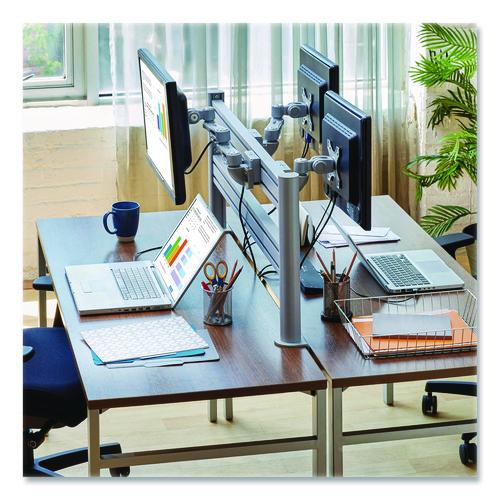 This VESA-compliant TV wall mount lets you place your digital signage, monitor or television where everyone can see it best. It's ideal for office, hybrid and work-from-home environments, including office cubicles, art tables and lab workbenches. The stylish aluminum mount fits most flat-panel displays from 13" to 32" and supports up to 22 lbs. The articulating arm adjusts independently to optimize viewing angles, minimize glare and improve ergonomics. To minimize screen glare, reduce eye fatigue and increase viewing comfort, the mount features -15° to +15° tilt, -90° to +90° swivel and full 360° rotation for positioning your screen just right. For hassle-free display compatibility, this slat wall mount supports the following VESA mounting hole patterns: 75 x 75 and 100 x 100. Requires slat wall system for installation; and easily attaches to the Slat Rail with Posts (DMSWKITTAA) or the Slat Rail (DMSWSLATTAA), both sold separately. Your monitor is elevated above the desktop, which frees up precious workspace. You can also slide the monitor along grooves and then adjust the viewing angle for optimal ergonomics. Grooves on both sides of the slat rail accommodate independently adjustable monitor setups when desks are pushed together back-to-back. The unit is compliant with the Federal Trade Agreements Act (TAA), which makes it eligible for GSA (General Services Administration) Schedule and other federal procurement contracts.