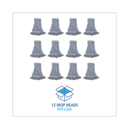 Mop Head, Floor Finish, Narrow, Rayon/Polyester, Medium, White/Blue, 12/Carton