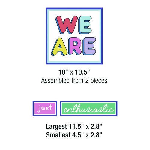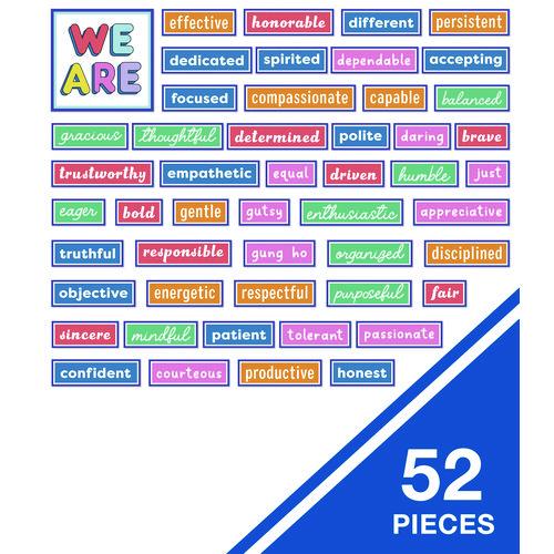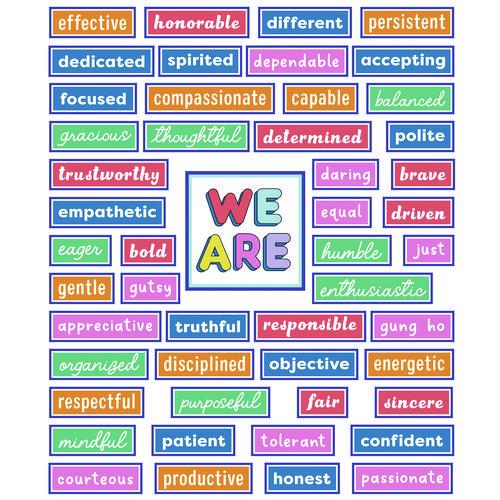 Help your students get excited to learn with Motivational Bulletin Board Sets from Carson Dellosa. These vibrant sets are perfect for decorating bulletin boards, chalkboards, wall displays, and more to create fun, visual references in and out of the classroom year-round. A resource guide is also included. Check out other motivational products to create a cohesive classroom theme.Package Includes: (1) "We Are" Header, Assembled from (2) Pieces: 10.5" x 10.5"; (50) Word Cards: Largest: 11.5" x 2.8", Smallest: 4.5" x 2.8"