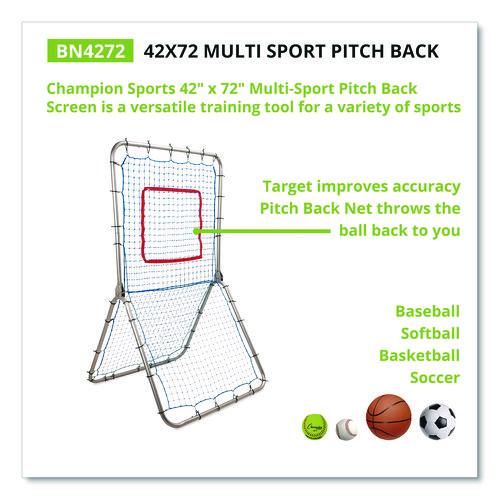 Great for schools, parks and backyards, our Champion Sports Multi-Sport Pitch Back Screen is a versatile training tool for a variety of sports. The practice screen rotates to different angles to help athletes practice kicking, batting catching and throwing, all with the same piece of equipment. The multi-sport pitch back screen is made with a tough steel frame and durable nylon netting that can endure even the most intense hits with ease, and it has a square target in the middle to help improve accuracy.Note: This is a non-returnable item.