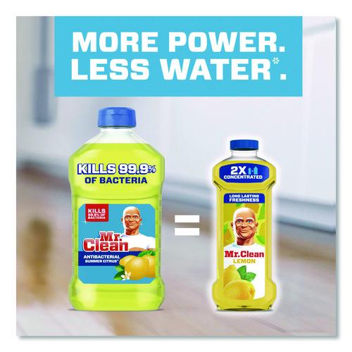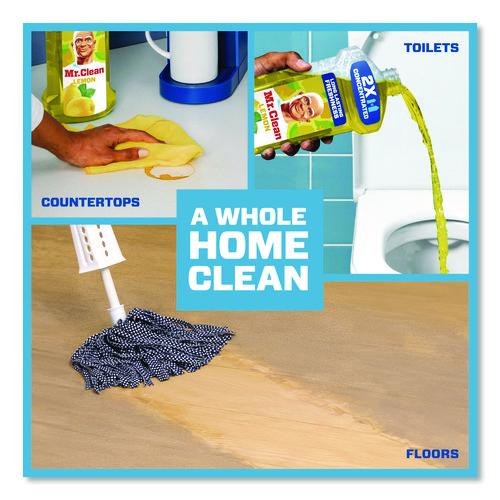 Mr. Clean®'s All Purpose Cleaner muscles through 100% of dirt and grease for powerful, multi-surface cleaning. Great for cleaning linoleum, tile and finished hardwood floors. Use as a bathroom cleaner to clean toilets, sinks and bathtubs. This multi-surface cleaner even works outside on garbage cans, doors and more. It makes cleaning your house that much easier and leaves long-lasting freshness behind. Add Mr. Clean® to your arsenal of cleaning supplies today!