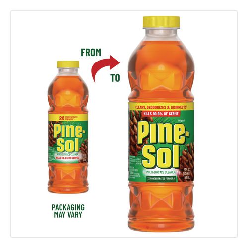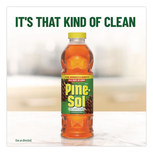 With Pine-Sol® Multi-Surface Cleaner Disinfectant Concentrated, you only need one cleaner to fight tough dirt, grease and grime. Pine-Sol gives you 5x cleaning action as it deodorizes, cuts through grease, removes grime, tackles dirt and removes 99% of allergens, all while leaving a classic pine scent. EPA registered to kill 99% of germs including Influenza A virus and SARS-CoV-2 (cause of COVID-19) when used as directed, on hard nonporous surfaces. This 2x concentrated formula lasts 2x longer than the unconcentrated Pine-Sol® formula. One bottle does it all. Pine-Sol® is suitable for use on sealed wood, tile, stone, porcelain, glass and more when used as directed. Do not use on marble, aluminum, copper or wood that is unfinished, unsealed, unpainted, waxed, oiled or worn.