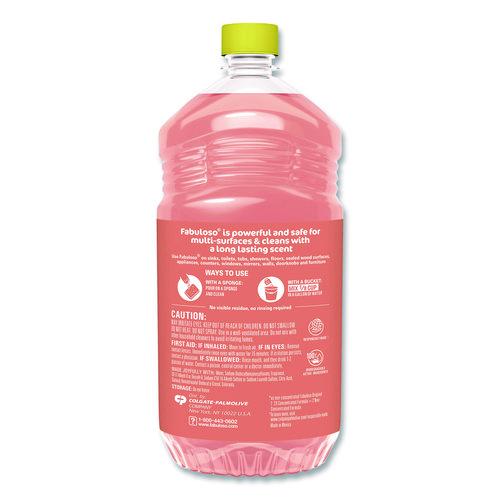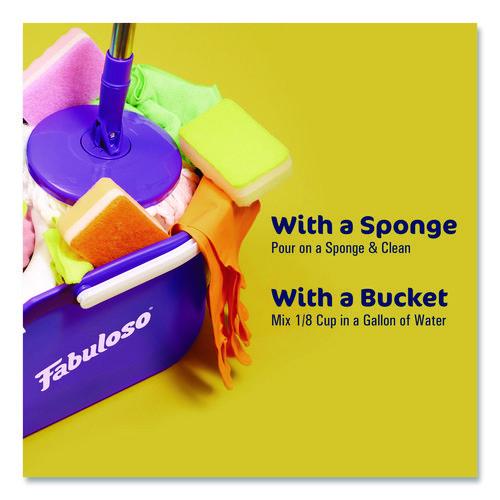 Fabuloso® Multi-Purpose Cleaner, 2X Concentrated Formula transforms your home or business with a fresh scent that lasts. Bring the fragrance of Fabuloso® indoors, and experience a warm, joyful feeling your friends and family will love. Fabuloso®'s 2X Concentrated Formula now provides 2x more active ingredients compared to non-concentrated Fabuloso Original, giving you 2x the dosage in the same bottle. Every colorful pour from the easy-pour bottle delivers a long-lasting, unmistakable freshness and leaves your home bright and clean. Use Fabuloso® Multi-Purpose Cleaner, on sinks, toilets, tubs, showers, kitchen and bathroom floors, sealed wood surfaces, appliances, counters, windows, mirrors, walls, doorknobs and furniture, and fill every room in your home with joy.