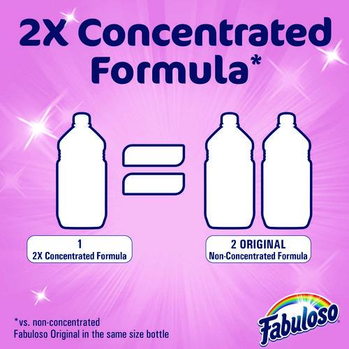Fabuloso® Multi-Purpose Cleaner, 2X Concentrated Formula transforms your home or business with a fresh scent that lasts. Bring the fragrance of Fabuloso® indoors, and experience a warm, joyful feeling your friends and family will love. Fabuloso®'s 2X Concentrated Formula now provides 2x more active ingredients compared to non-concentrated Fabuloso Original, giving you 2x the dosage in the same bottle. Every colorful pour from the easy-pour bottle delivers a long-lasting, unmistakable freshness and leaves your home bright and clean. Use Fabuloso® Multi-Purpose Cleaner, on sinks, toilets, tubs, showers, kitchen and bathroom floors, sealed wood surfaces, appliances, counters, windows, mirrors, walls, doorknobs and furniture, and fill every room in your home with joy.Note: This is a non-returnable item.