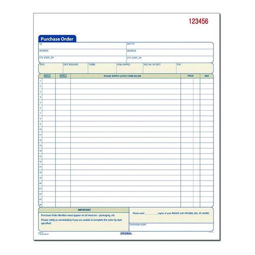 Easily keep hard copy records of each purchase order with the Adams® Multipart Purchase Order Pad. A comprehensive, preprinted layout features prompts for all the important details. With entry areas for purchaser, ship-to and administrative information as well as itemized order details, just about anything one might wish to capture can be accommodated. Carbonless, multipart format lets you provide a copy to the purchaser while keeping copies for yourself, and the pad's wraparound cover also allows you to place the front cover between sets as you fill out a form, minimizing the potential for write-through.