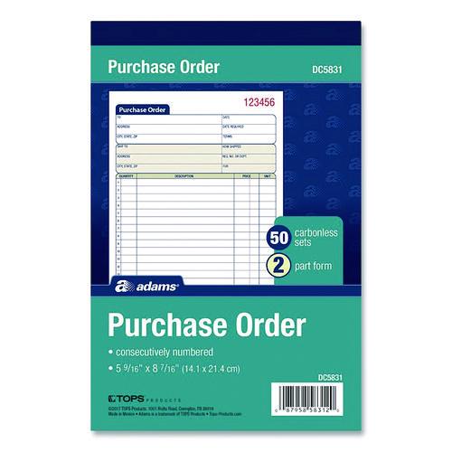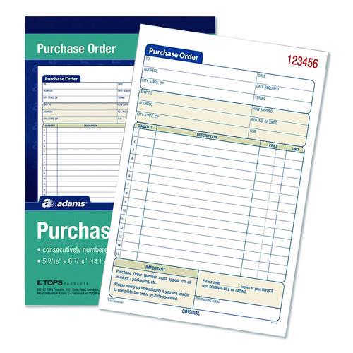Easily keep hard copy records of each purchase order with the Adams® Multipart Purchase Order Pad. A comprehensive, preprinted layout features prompts for all the important details. With entry areas for purchaser, ship-to and administrative information as well as itemized order details, just about anything one might wish to capture can be accommodated. Carbonless, multipart format lets you provide a copy to the purchaser while keeping copies for yourself, and the pad's wraparound cover also allows you to place the front cover between sets as you fill out a form, minimizing the potential for write-through.