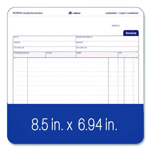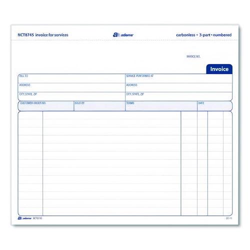 Designed specifically for service-based businesses, Adams® Multipart Service Invoices deliver a versatile format that provides ample space for customization and detailed descriptions of the services rendered. Pre-printed areas accommodate all the important administrative aspects. Carbonless, multipart design allows you provide a copy to your client while keeping clean copies for your records, and each form set features open space at top for your business's logo or name stamp. The pad's wraparound cover also allows you to place the front cover between sets as you fill out a form, minimizing the potential for write-through.
