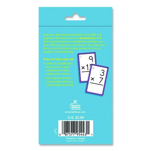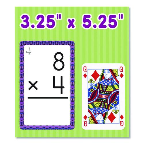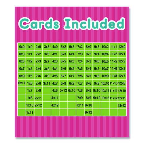 Multiplication Flash Cards present an easy, fun way for kids to practice essential math skills. This 54-card set features 53 flash cards with more than 100 multiplication problems—one problem per side of each card, as well as reverse side's answer. Large, bold numbers are placed on a white background for easy reading. A special bonus card is also included that offers creative game ideas that are designed to help reinforce learning. Flash cards allow kids to develop critical thinking, decision-making, turn-taking and other social skills while allowing them to learn in a hands-on way.