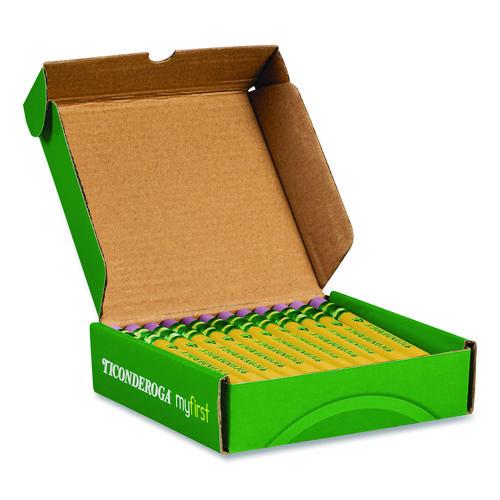 Ticonderoga® My First® short length (4.5") pencils deliver better control and promote a more natural grip as recognized essential by experts in early learning handwriting. The large 13/36" diameter reduces writing fatigue and the triangular shape promotes the correct three-finger grip.