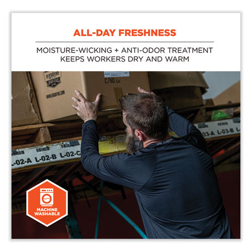 The N-Ferno 6436 Long Sleeve Lightweight Base Layer Shirt is designed for comfortable warmth in mild to cold conditions. Made with lightweight and breathable stretch fabric, it is a great base layer shirt for keeping workers warm without overheating during strenuous activity. The 180 g polyester-spandex performance material provides warmth without the constricting or bulky feel often found with heavyweight base layers. The fabric is smooth and stretchable for easily layering under sweatshirts and jackets, plus a long tail for full coverage. Unlike other base layers, this shirt is designed to sit slightly looser on the skin to enhance breathability and mobility while also providing an air gap for additional insulation. Raglan sleeves with wider underarms also make for full range of motion. Featuring moisture-wicking technology and an anti-odor treatment to keep workers comfortably fresh, dry and warm all day.Note: This is a non-returnable item.