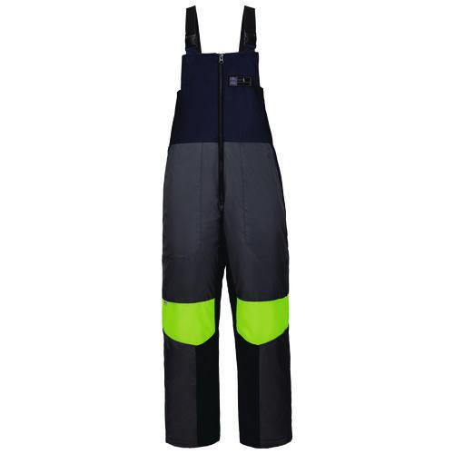 N-Ferno 6477 Insulated Freezer Bib Overalls are built for warm, durable and comfortable protection in cold storage freezer environments. Designed with 100% ripstop polyester and a water-resistant PU coating, these insulated bibs stand up against the harshest conditions to provide warmth without restricting movement and dexterity. These work bibs have two oversized side pockets for easy access when wearing gloves. A snap closure with zippers on each leg make it easy to pull on and take off without removing work boots. A dual button closure on the bottom of the pants makes for an adjustable fit to accommodate varying heights and to ensure pants won't drag on the floor. Four-way stretch sides enhance comfort where you need it, and adjustable elastic straps make for a custom fit. Reflective piping and hi-vis yellow material keeps wearers safe and seen. A size label is visible on the front of the bibs for easy viewing when being hung up or stored.Note: This is a non-returnable item.