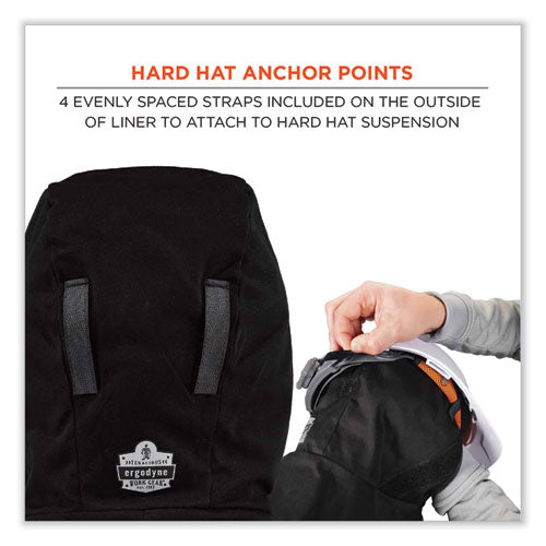 The N-Ferno 6882 fire-resistant (FR) Winter Hard Hat Liner has two layers of insulation with FR technology to meet ASTM F1506. The fire-resistant outer shell and lining are made of 60% modacrylic cotton and 40% cotton twill blend to stand up to tough environments and meets requirements of performance specification ASTM F1506; classified CAT2 according to NFPA 70E. Arc-rated; ATPV rating of 20 cal/cm2. This lightweight thermal liner is shoulder-length to keep head, ears and neck covered and fits comfortably under helmets or hard hats without feeling too bulky. There are four hook and loop straps on the exterior of the liner designed to securely attach to the interior of a hard hat for versatile protection in extreme work environments. This hard hat winter liner has an elastic strip in the forehead area to keep the liner snug. Small pockets by the ears are designed to hold hand warmers.Note: This is a non-returnable item.
