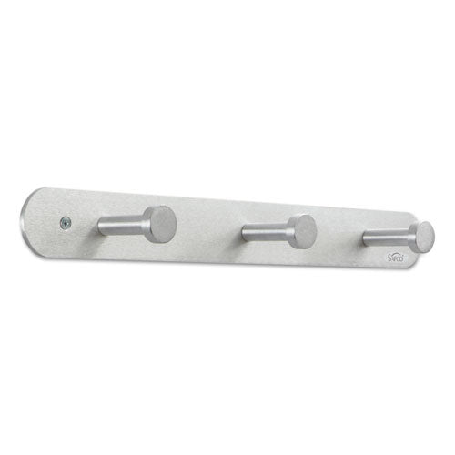 The Nail Head Coat Hook is a stylish and functional hook coat rack that brings both elegance and durability to any space. Featuring satin aluminum hooks with a matching back plate, this coat hook is designed to complement any modern office, entryway, or home décor. The oversized circular hooks help protect your garments by preventing snags or damage, making it ideal for hanging coats, hats, bags, and more. Easy to install, the Nail Head Coat Hook comes with all the necessary mounting hardware for a quick and secure setup. Whether you're looking to organize your workspace or add a sleek storage solution to your home, this coat hook offers both practicality and style in one.Package Includes: Mount; Screws