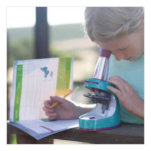 This 2-in-1 light and dissecting microscope gives up-close views—30x, 100x, and 400x magnifications—of anything you can imagine, from peacock feathers and goldfish scales to your own skin and cheek cells. The included keepsake journal features 22 pages of fun science experiments for kids and activities from observation to creative writing, drawing and more.Package Includes: 26-Piece Scientific Tool Set; 22-Page Activity JournalNote: This is a non-returnable item.