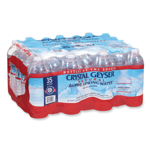 Only 100% Natural Spring Water. Most other bottled waters start with municipal tap water and use a process called Reverse Osmosis Filtering to eliminate contaminantswhile also stripping away natural minerals. Grystal Gyeser® however, only bottles spring water. Crystal Geyser® Alpine Spring Water® is made as nature intended, pure and natural, from the protected spring sources. Crystal Geyser® water comes directly from the earth. It is the only major U.S. bottled water company that bottles exclusively at the spring source. It's more difficult to do it this way, but upholds the company's commitment to uncompromised quality. All packaging is 100% recyclable.Note: This is a non-returnable item.