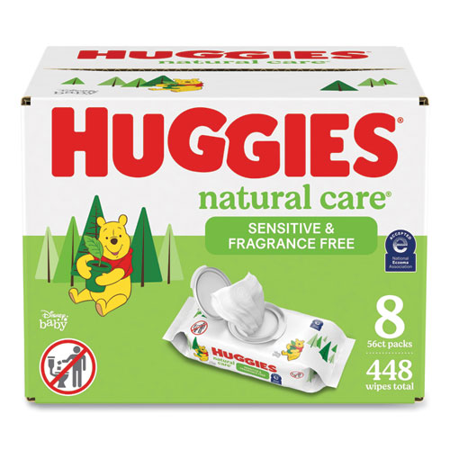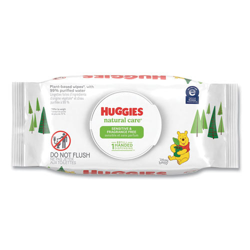 Huggies® Natural Care® Sensitive Baby Wipes are plant-based wipes, made with 99% purified water and 1% skin essential ingredients for a gentle clean. Infused with aloe and vitamin E, the unique base sheet locks-in and absorbs the mess to help keep baby's skin clean and moisturized. Safe for sensitive skin with no harsh ingredients, Huggies® Natural Care® unscented diaper wipes are hypoallergenic, dermatologically tested and pH-balanced to help maintain healthy skin. The wipes are fragrance-free, alcohol-free, paraben-free and do not contain phenoxyethanol or MIT, earning these diaper wipes the National Eczema Association's seal of approval. Extra soft and gentle, making them ideal for sensitive newborn skin. Plus, with EZ Pull, one-handed dispensing, it is easy to grab wipes without wasting sheets!