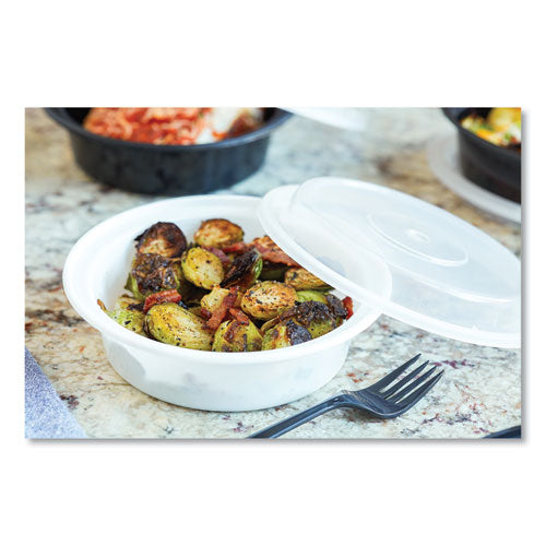 Newspring VERSAtainer Microwavable Containers, Round, 16 oz, 6 x 6 x 1.5, White/Clear, Plastic, 150/Carton