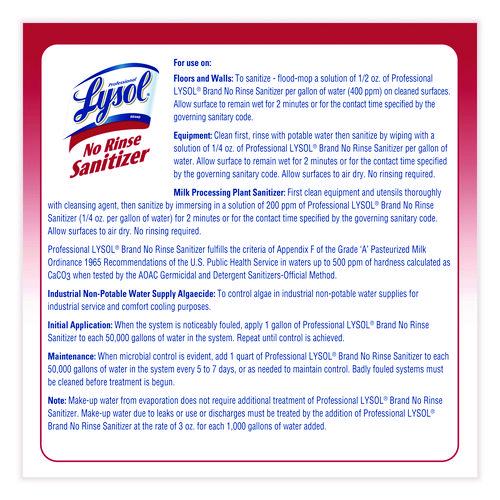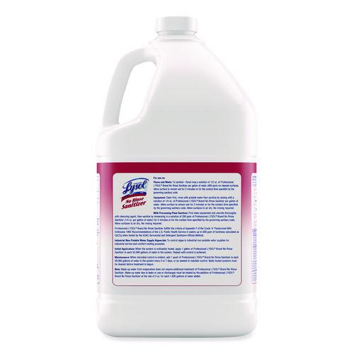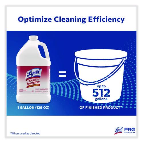 Optimize cleaning efficiency and meet high-volume sanitizing needs with Professional Lysol No Rinse Sanitizer Concentrate, ideal for use in food service and processing areas. Confidently uphold food code requirements with the no-rinse formula that's perfect for a 3-bin sink and clean-in-place applications. Effectively sanitize food and drink preparation and service areas, hospitals, nursing homes, physician offices, hotels, and more. Help staff keep commercial kitchens, storage areas, and restrooms sanitized. Save time and money with the economical, concentrated formula that can be diluted on-site for up to 512 gallons of sanitizing solution in eating establishment areas.
