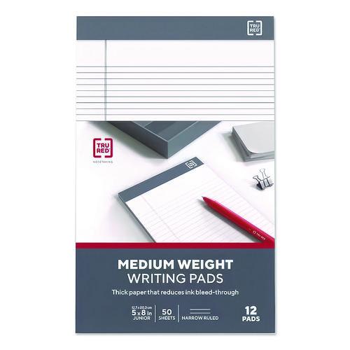 Notepads, Narrow Rule, 50 White 5 x 8 Sheets, 12/Pack