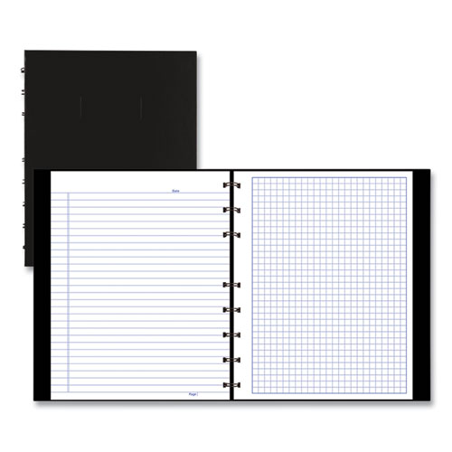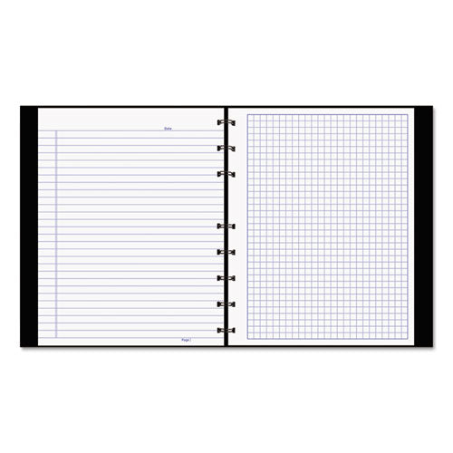 Durable hard cover provides increased writing stability. Twin-wire binding allows book to lie flat when open. Right side is quad-ruled; facing page ruled for notes. Includes colored adhesive labels to customize index and covers. Microperforated pages. Double-sided pocket.