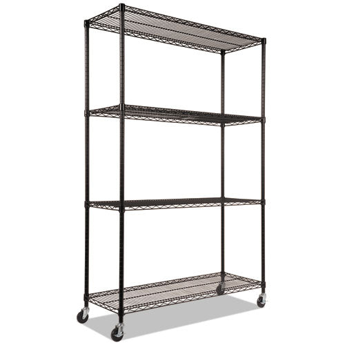 NSF Certified 4-Shelf Wire Shelving Kit with Casters, 48w x 18d x 72h, Black